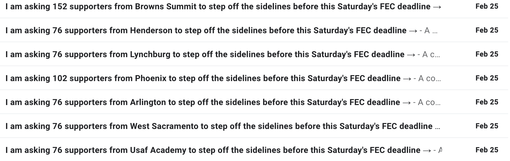 اخیراً نسبت به مطالعه ذکر شده در بالا، از یک آدرس برچسبگذاری شده برای ثبت نام مجدد برای کمپینهای باقیمانده و DNC/RNC استفاده کردیم تا ببینیم ارتباطات آنها چگونه تغییر کرده است. در یک کمپین ما یک خط موضوع را در سراسر آدرس دیدیم اما با تغییرات جزئی که عدد متفاوتی را نشان میداد. با کلیک بر روی هر ایمیل دیدیم که هر پیام به هر آدرس برچسب گذاری شده بر اساس وضعیت و شماره مورد استفاده ما سفارشی شده است. این سطح بالایی از شخصیسازی را نشان میدهد – چیزی که من آن را بهترین عمل مطلق در نظر میگیرم.