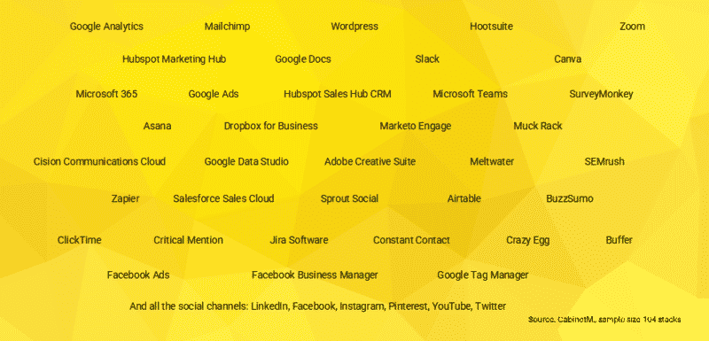 1) پشته martech شرکت من، که با آزمایش و آزمایش چیزهای جدید به طور مداوم در حال تکامل است.